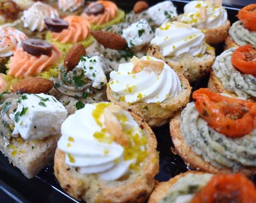 - Fromage frais with piquillo peppers and black olives on curry bread