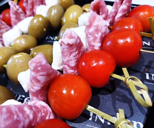 Spianata Romana, Cherry Tomato. Olive, Mozzerella