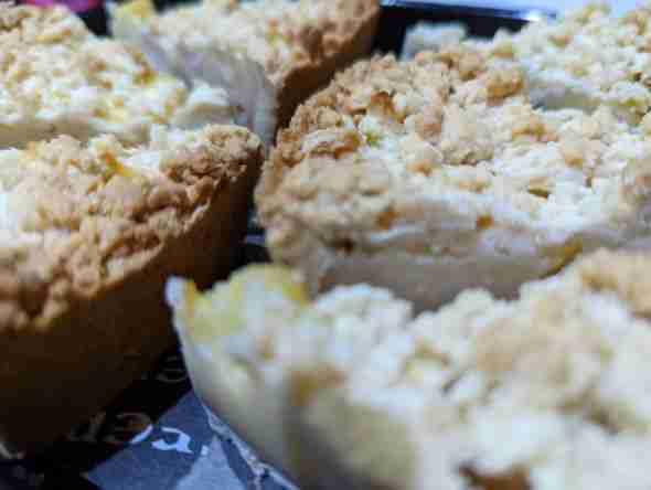 A moist carrot sponge, filled and topped with a cream cheese icing and finished with walnut.
